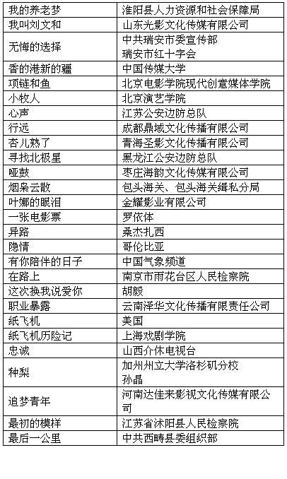 本届入围影片,题材丰富,类型多样,风格各异。既有来自新华社、公安部、中国军网、检察院系统等机构优秀影片,又有来自洛约拉马利蒙特大学、北京电影学院、中央戏剧学院等国内外专业影视院校,还有一些由国内外优秀影视公司出品的人气网络大片。