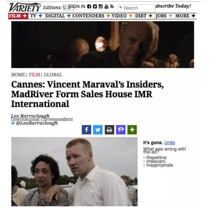 Variety关于熙颐影业子公司Insiders 与Mad River建立合资企业IMR的报道